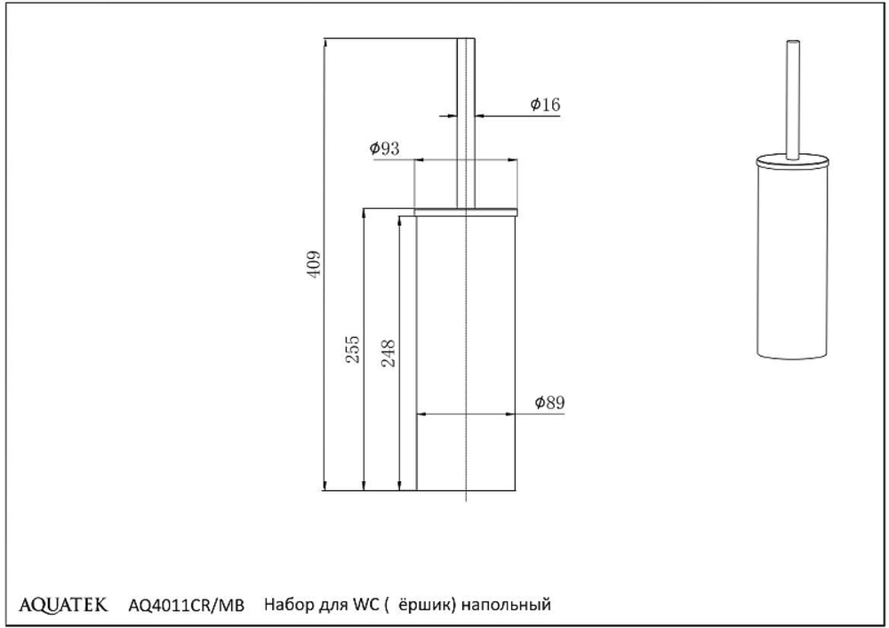 Ершик для унитаза Aquatek Вега AQ4011BGM цвет Оружейная сталь