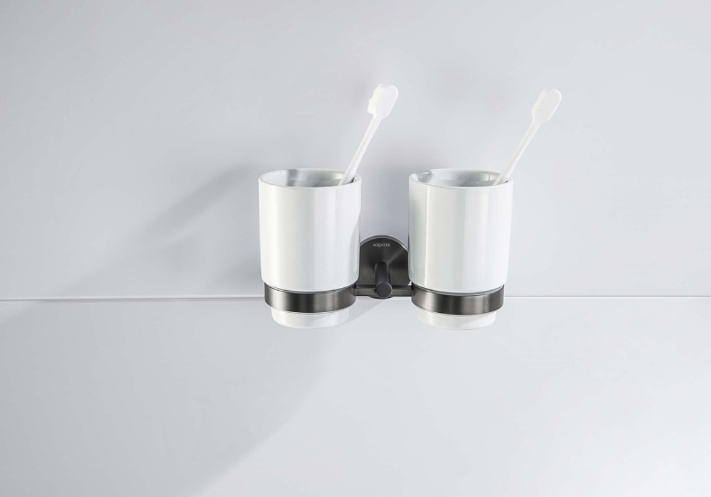 Стакан для зубных щеток Aquatek Бетта AQ4617BGM двойной цвет Оружейная сталь