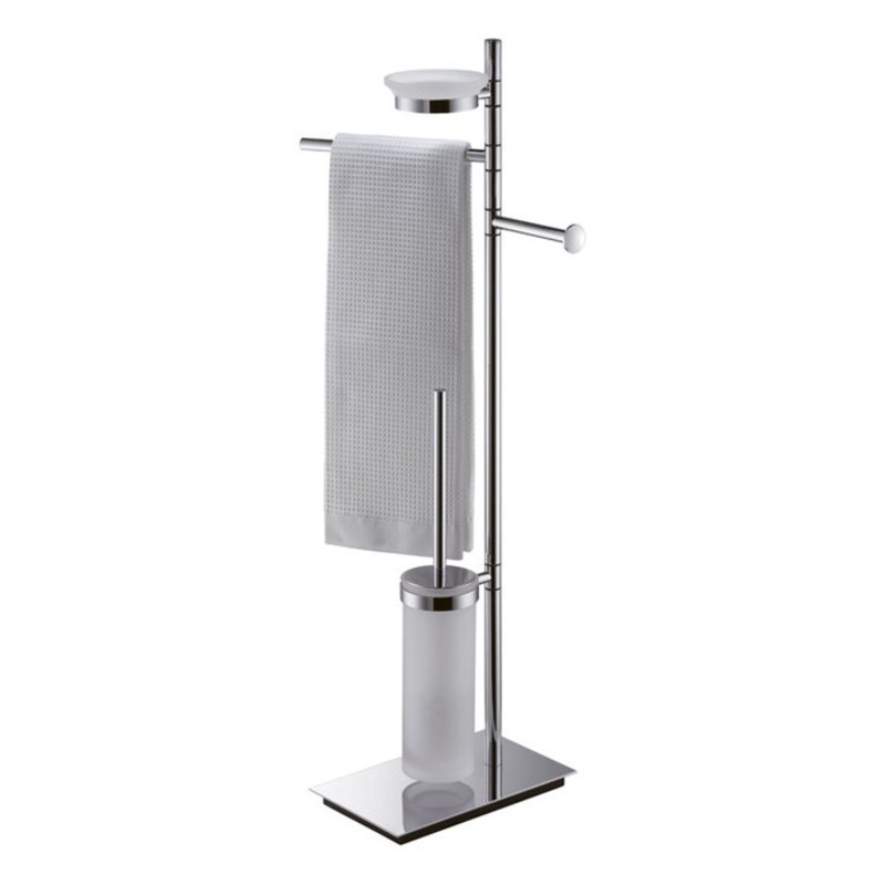 Colombo Square Стойка с аксессуарами, 81см, мыльница, полотенцедержатель, туалетный ерш, держатель т/б, цвет: хром