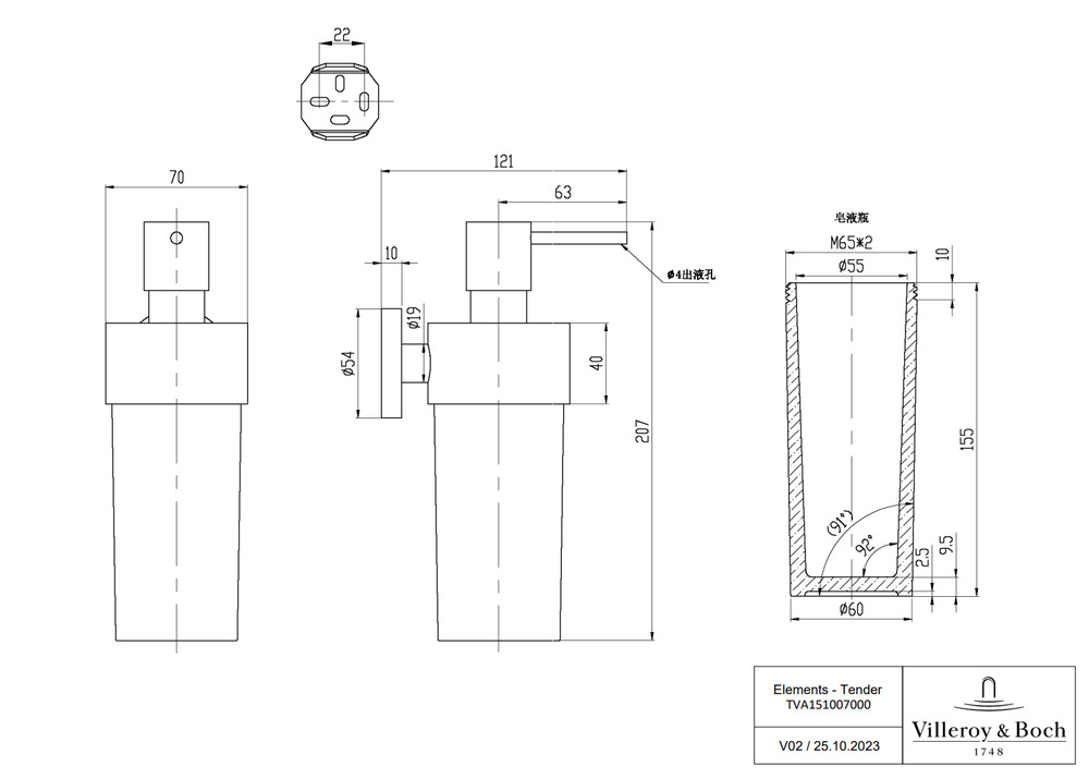 Дозатор для жидкого мыла Villeroy&Boch Elements-Tender TVA15100700061 Хром
