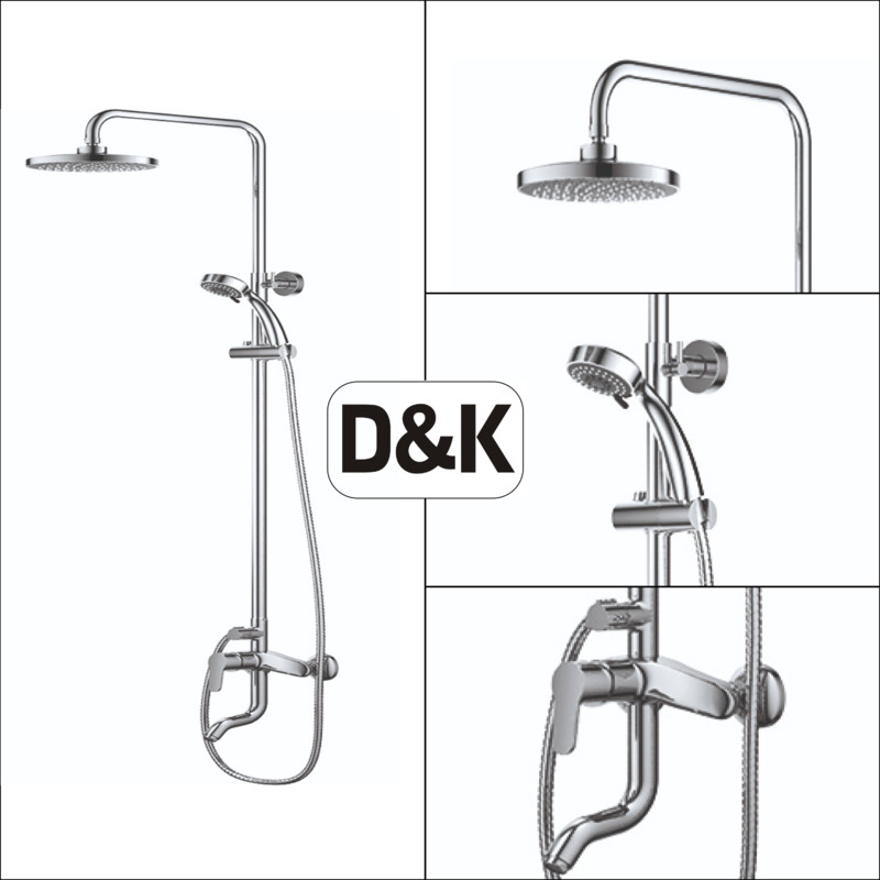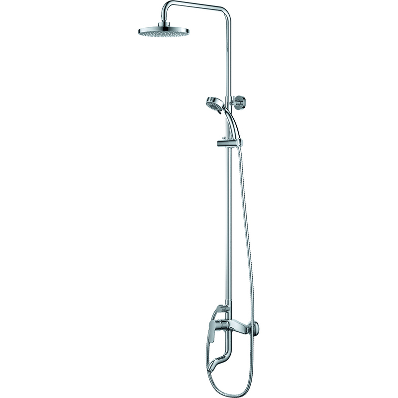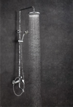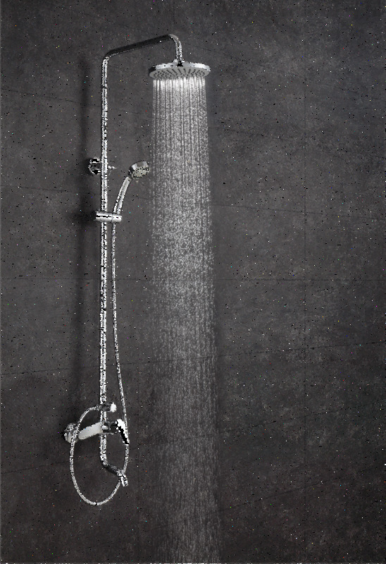 Функциональная душевая система с широкой лейкой, с эффектом настоящего тропического ливня. Штанга регулируется под любой рост.