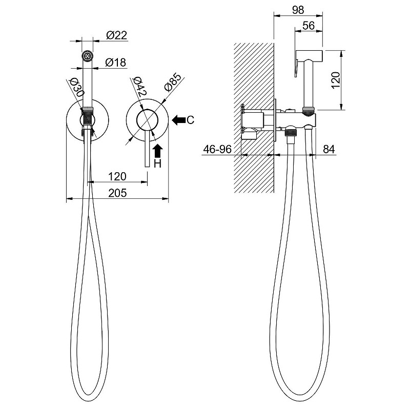 Гигиенический душ со смесителем Aquatek Европа AQ1319BG Золото шлифованное