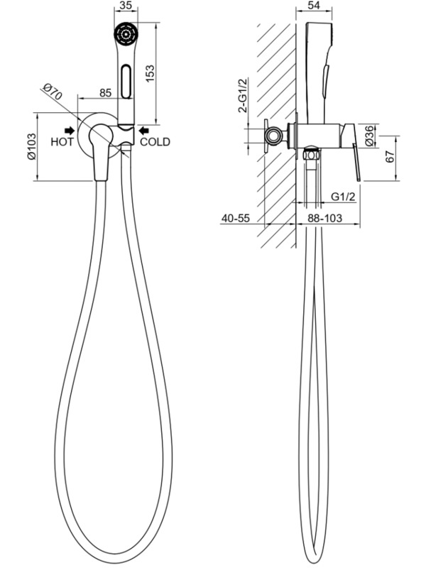 Гигиенический душ со смесителем Aquatek Лугано AQ1719BGM Оружейная сталь