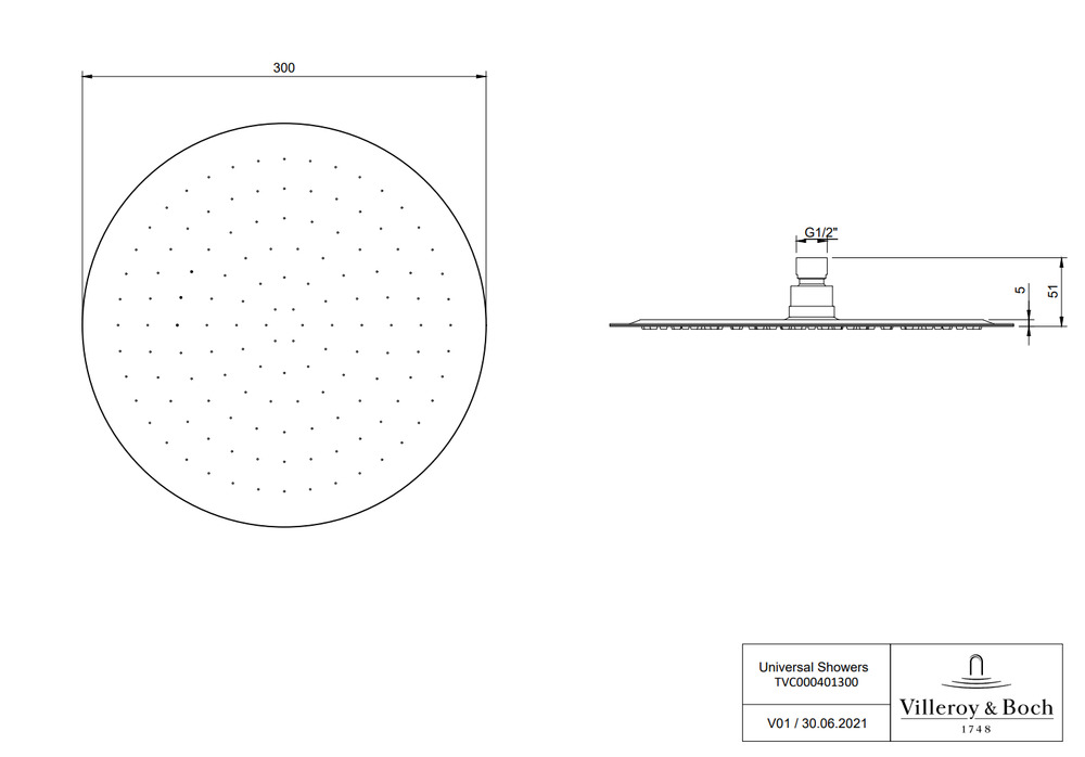 Верхний душ Villeroy&Boch TVC00040130061 Хром
