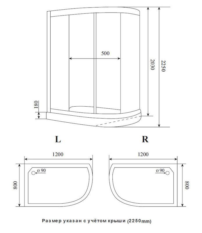 - Материал поддона: акрил