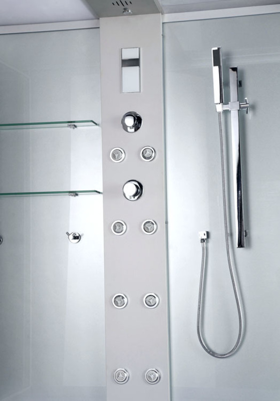 - Комплектация: полки, душевая лейка