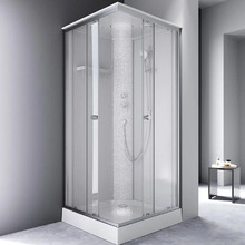 Комплектация: поддон, профили, передние стекла, набор креплений, задние стенки, верхний душ, ручной душ, купол с верхним душем, инструкция