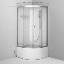 Комплектация: поддон, профили, передние стекла, набор креплений, задние стенки, верхний душ, ручной душ, купол с верхним душем, инструкция