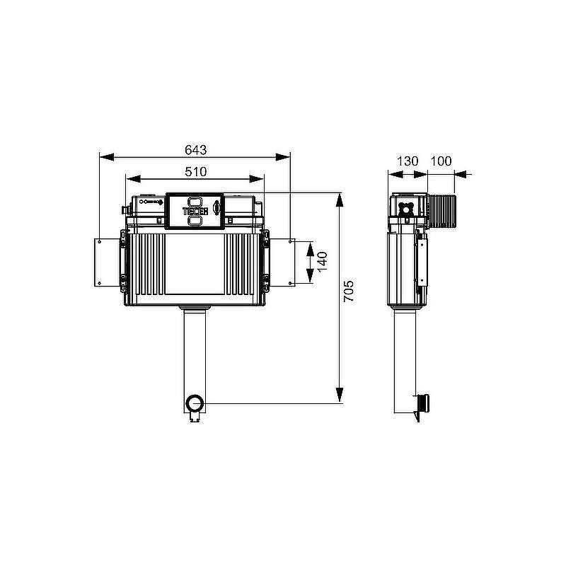 Смывной бачок Tece Profil 9041308 для напольного унитаза без кнопки смыва