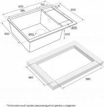 - Размер чаши (ДхШхВ): 430 х 385 х 200 мм
