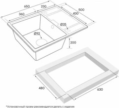 - Монтажная длина х ширина: 480 х 630 мм