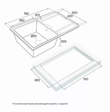 - Монтажная длина х ширина: 480 х 760 мм