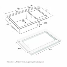 - Монтажная длина х ширина: 480 х 760 мм