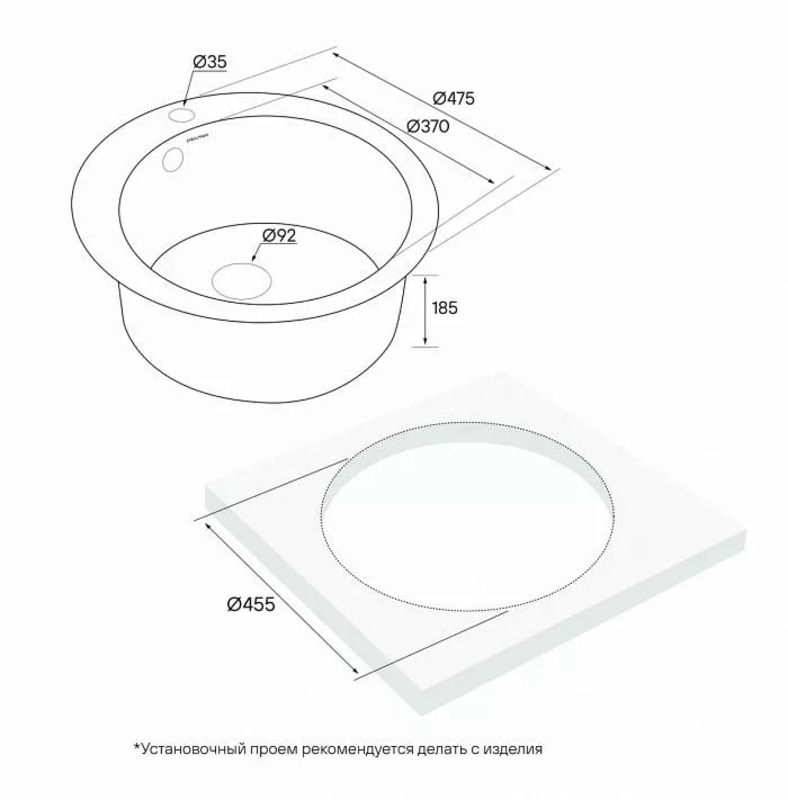 - Монтажная длина х ширина: D: 455 мм