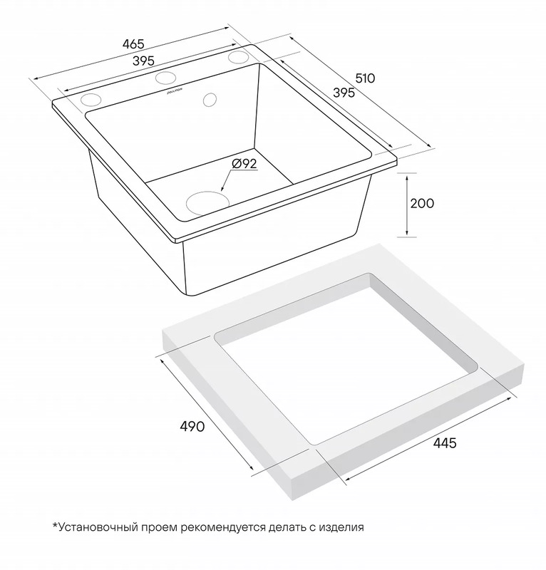 - Размер чаши (ДхШхВ): 395 х 395 х 190 мм