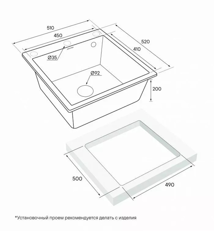 - Размер чаши (ДхШхВ): 410 х 450 мм х 190 мм
