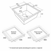 - Монтажная длина х ширина: 440х435 / 410х405 мм