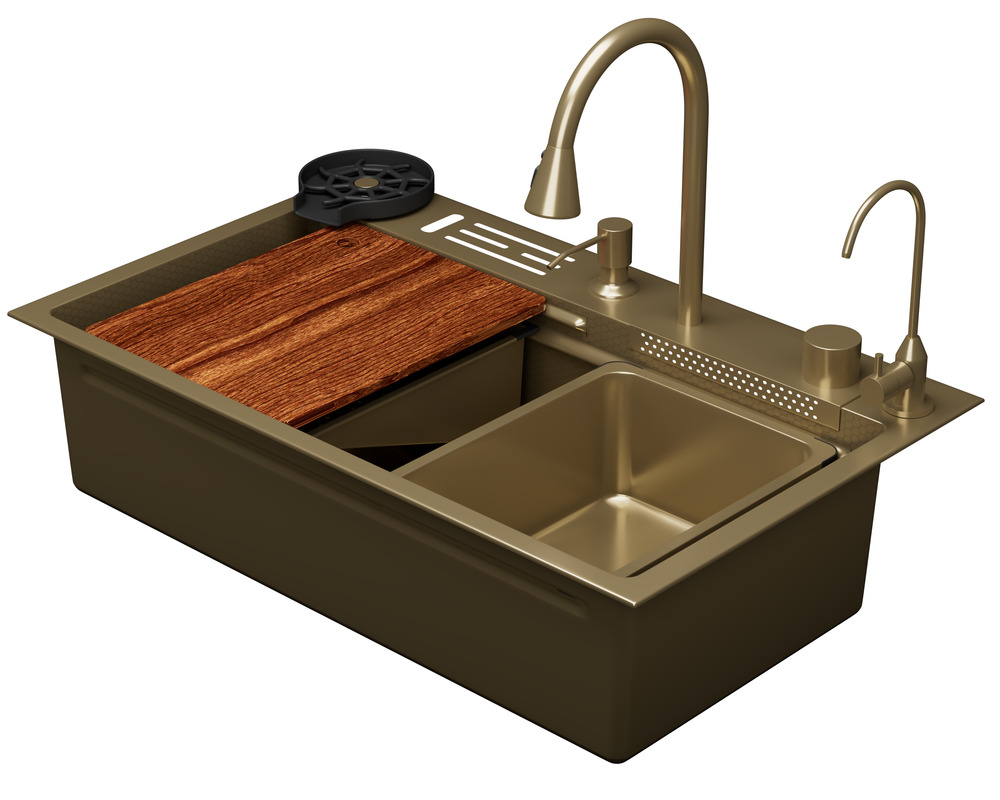 Кухонная мойка многофункц. DQ нерж.сталь матовое золото в комплекте со смесителем и аксессуарами (DKS754607)