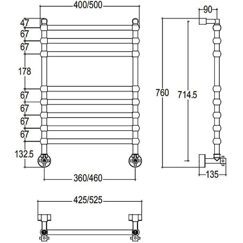 В комплекте поставки: полотенцесушитель, крепления, отражатели, кран Маевского.