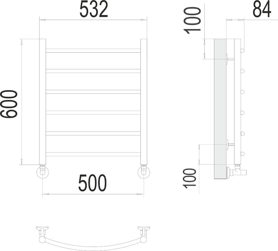 Водяной полотенцесушитель Terminus Классик П6 500x600 4670078530226 цвет Хром, нижнее подключение, G 1/2" ВР