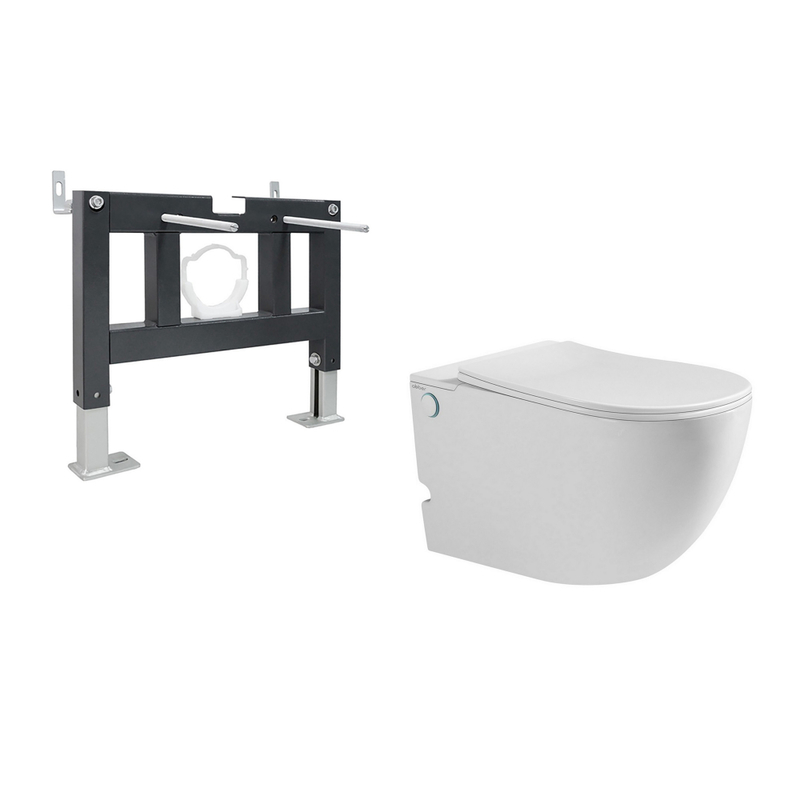 Состоит из подвесного керамического унитаза с импульсным смывом, сиденья для унитаза из дюропласта с микролифтом, инсталляции для унитаза ABBER AC0101P