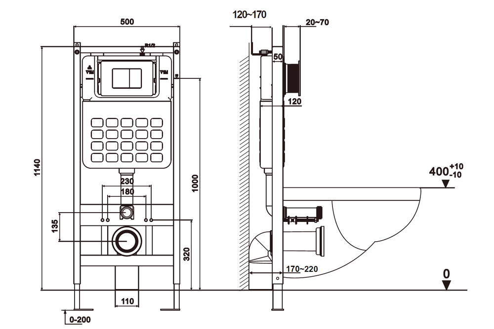 - Тип: подвесной унитаз + инсталляция