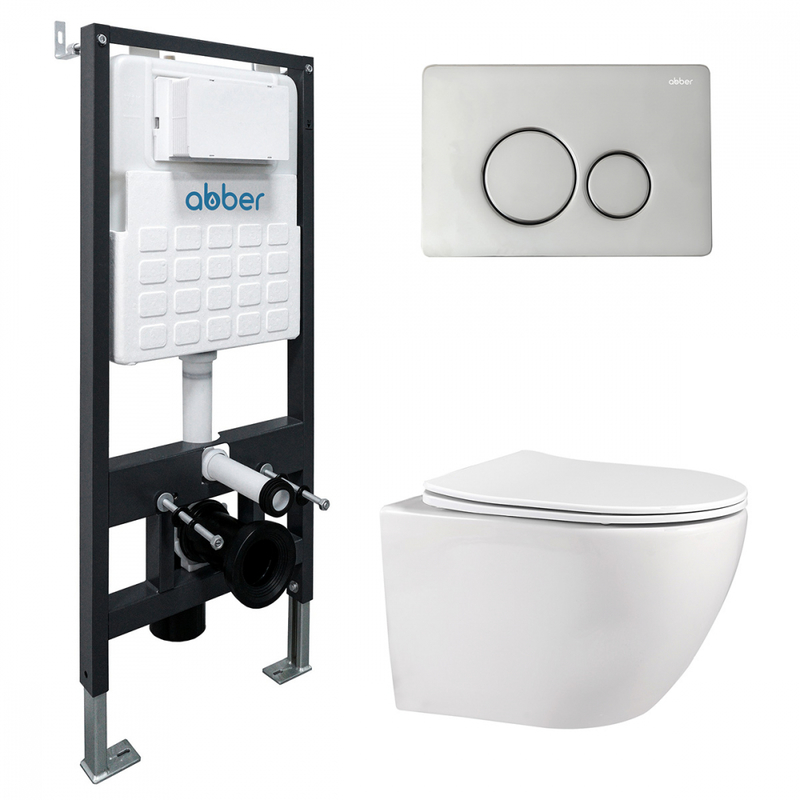 Комплект подвесной унитаз ABBER Bequem AC1100 белый с инсталляцией AC0105 и кнопкой AC0121 хром