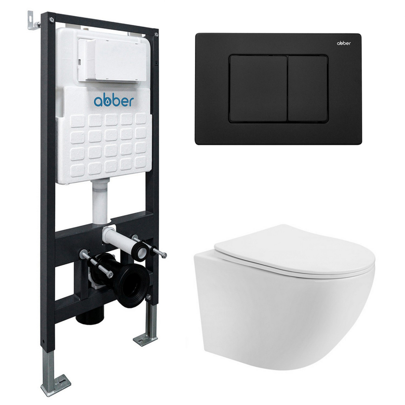 Комплект подвесной унитаз ABBER Bequem AC1100T белый с инсталляцией AC0105 и кнопкой AC0120MB черный матовый