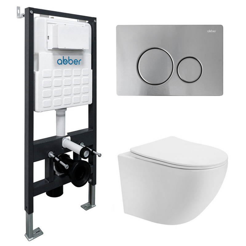 Комплект подвесной унитаз ABBER Bequem AC1100T белый с инсталляцией AC0105 и кнопкой AC0121MCH матовый хром