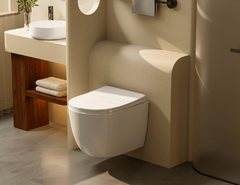 Состоит из подвесного керамического унитаза со смывом торнадо, сиденья для унитаза из дюропласта с микролифтом, инсталляции AC0105, кнопки смыва из нержавеющей стали, в цвете матовый хром.