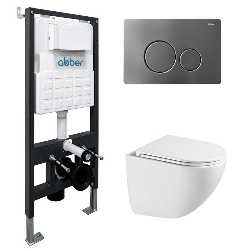 Комплект подвесной унитаз ABBER Bequem AC1131TC белый, с закрытым дном с инсталляцией AC0105 и кнопкой AC0121NG никель