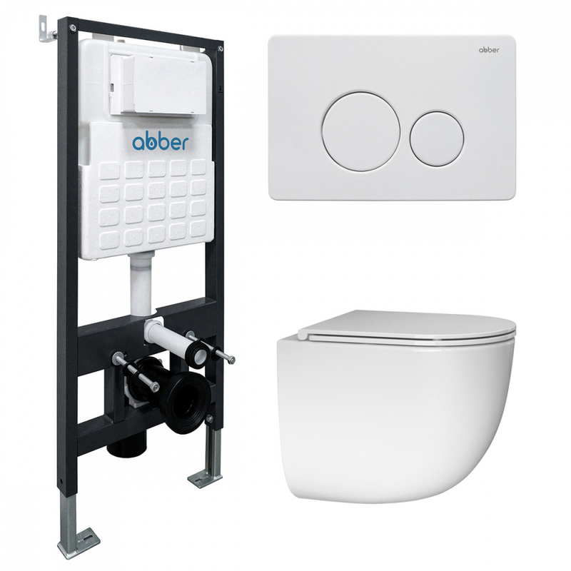 Комплект подвесной унитаз ABBER Bequem AC1132TC белый, с закрытым дном с инсталляцией AC0105 и кнопкой AC0121MW белая матовая