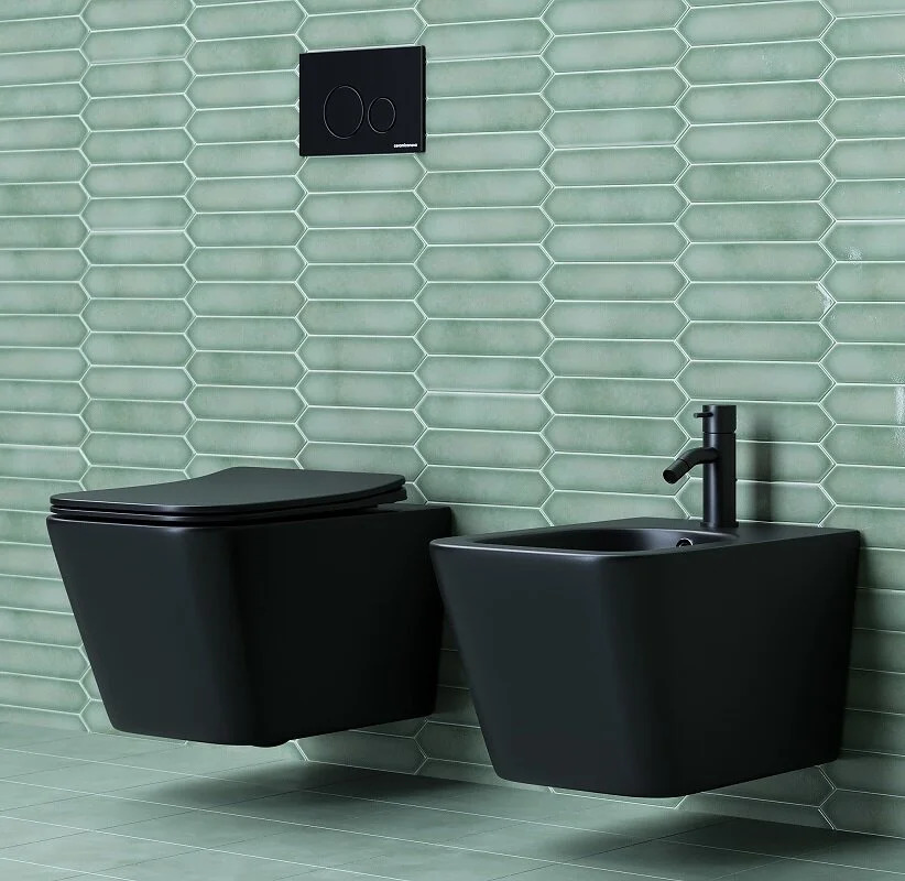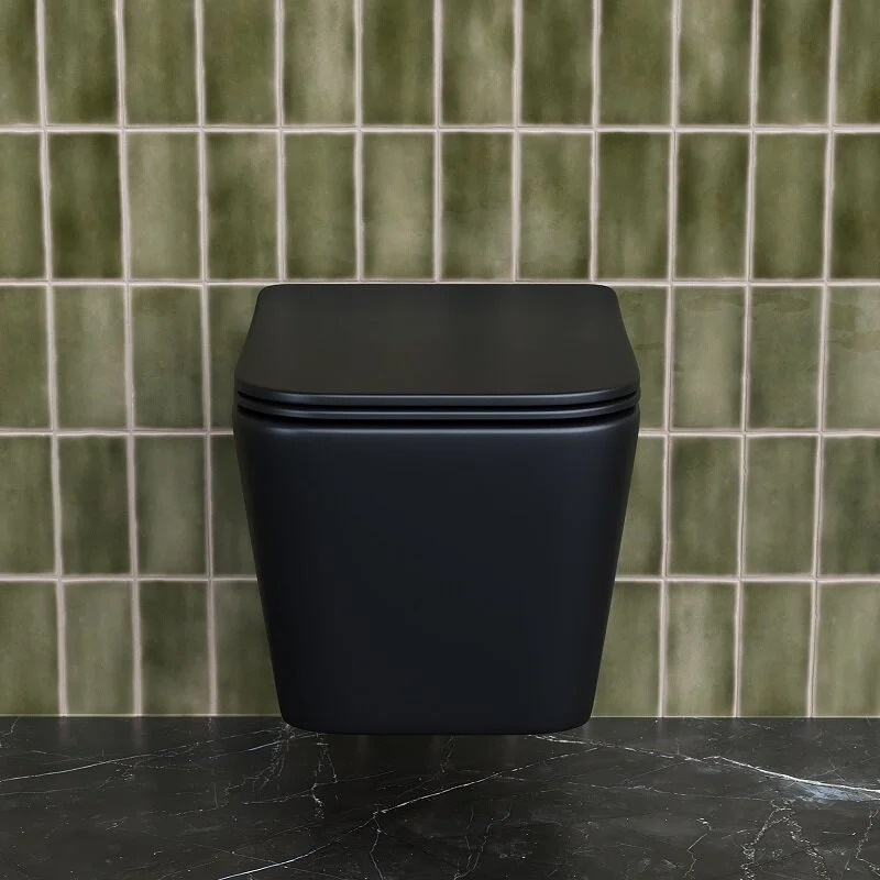Подвесной безободковый унитаз Ceramicanova Metric CN3007MB Rimless, крышка микролифт, черный матовый, сантехфарфор