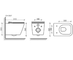 - Унитаз подвесной безободковый, защитный бортик от выплеска воды