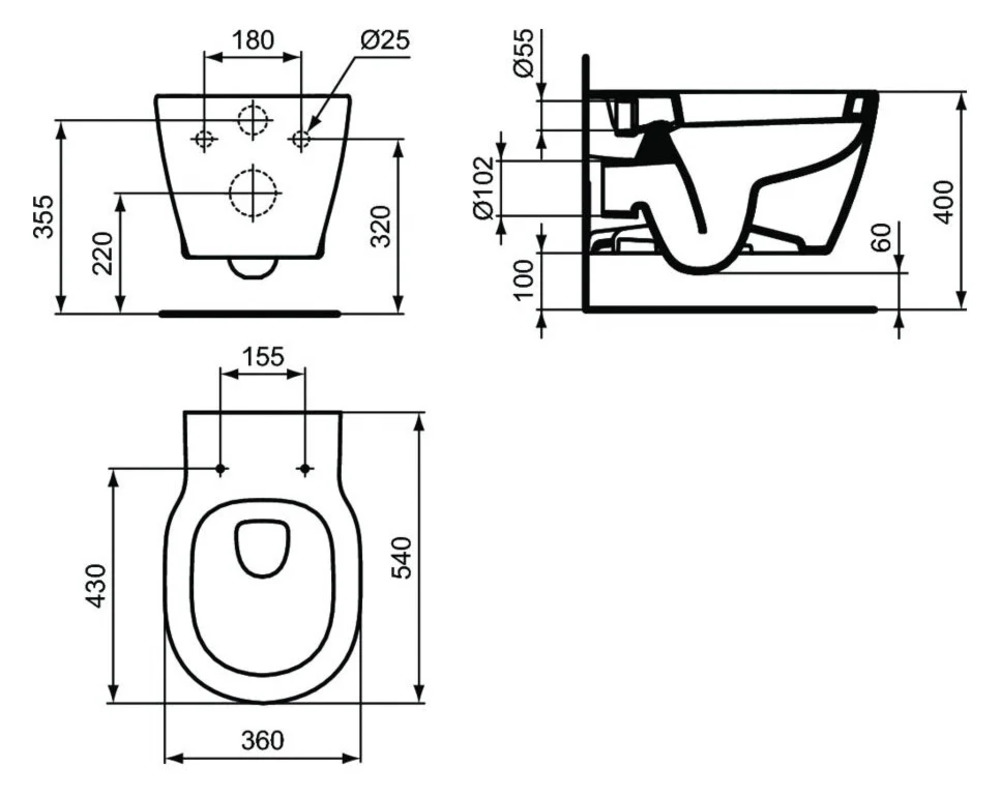Подвесной безободковый унитаз Ideal Standard Connect E822301 Rimless белый, сиденье микролифт