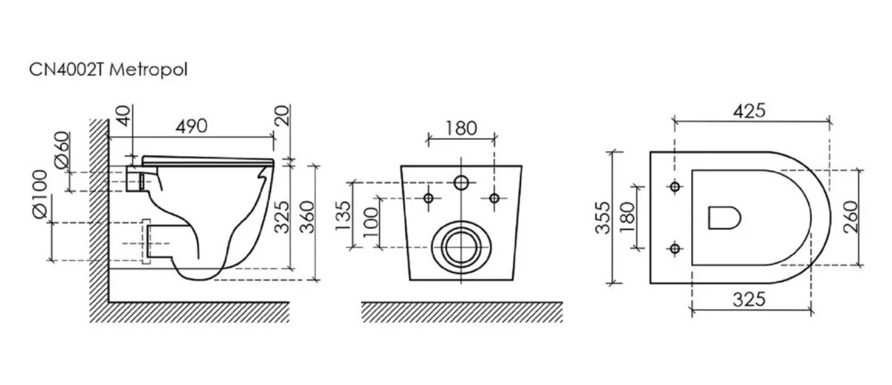 Подвесной унитаз Ceramicanova Metropol CN4002TMB, безободковый, смыв торнадо, крышка-сиденье микролифт, черный матовый, сантехфарфор