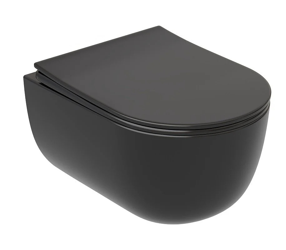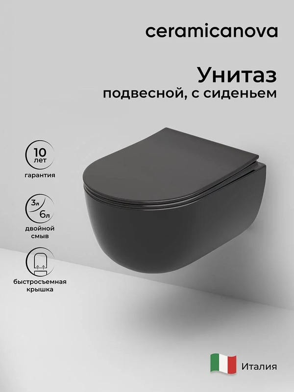 Подвесной унитаз Ceramicanova Modena Rimless, CN6063MB, безободковый, крышка-сиденье микролифт, черный матовый, сантехфарфор