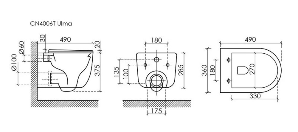 - Унитаз подвесной, безободковый
