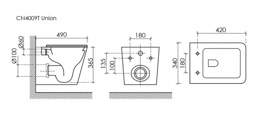 Подвесной унитаз Ceramicanova Union, CN4009T, Торнадо, безободковый, крышка-сиденье микролифт, белый, сантехфарфор