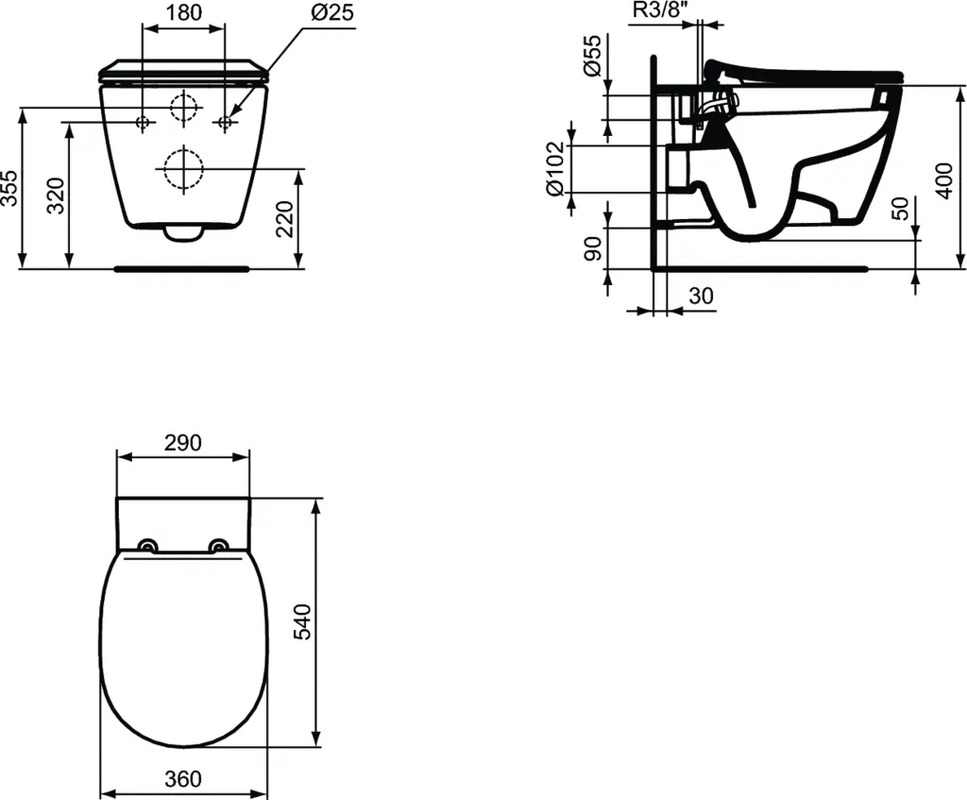 Для монтажа с сиденьем и крышкой E712801/E712701 (обычное) или E772301/E772401 (тонкое) заказывается дополнительно.