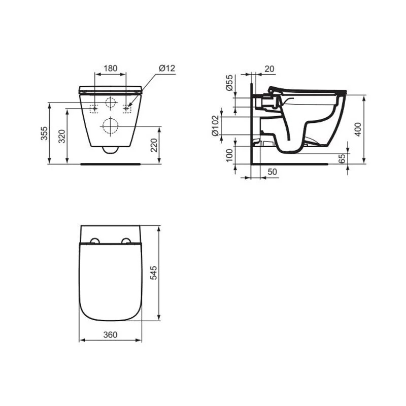 Подвесной унитаз Ideal Standard i.life B T5330HY, безободковый, крышка-сиденье с микролифтом в комплекте, цвет белый