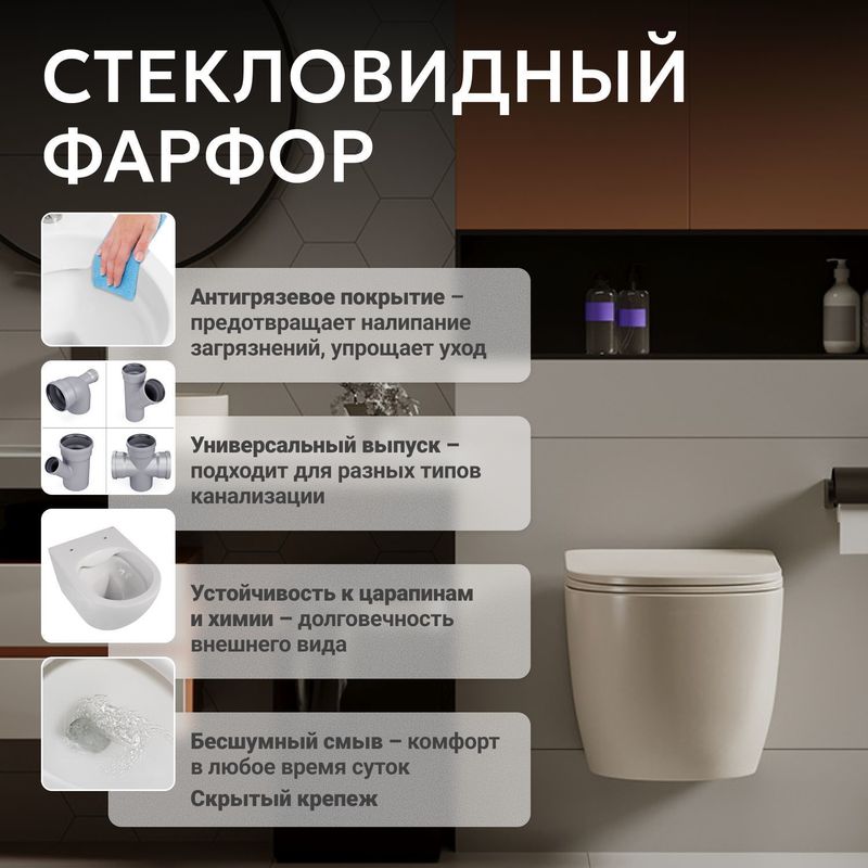 Унитаз ABBER Bequem AC1101MBE подвесной светло-бежевый матовый, безободковый