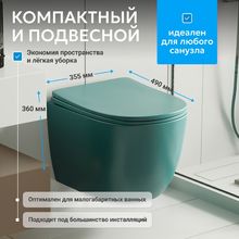 Унитаз ABBER Bequem AC1101MBG подвесной темно-зеленый матовый, безободковый