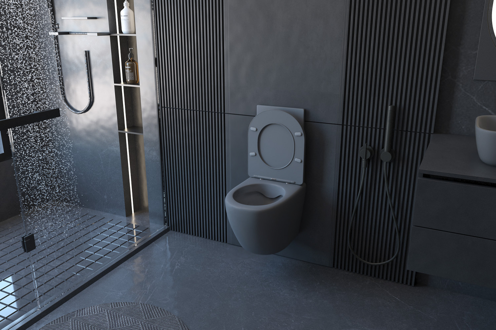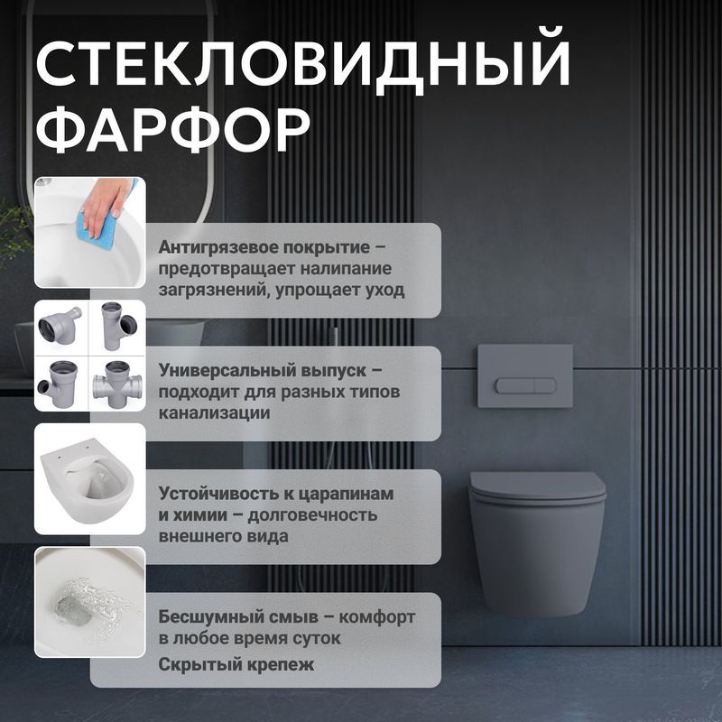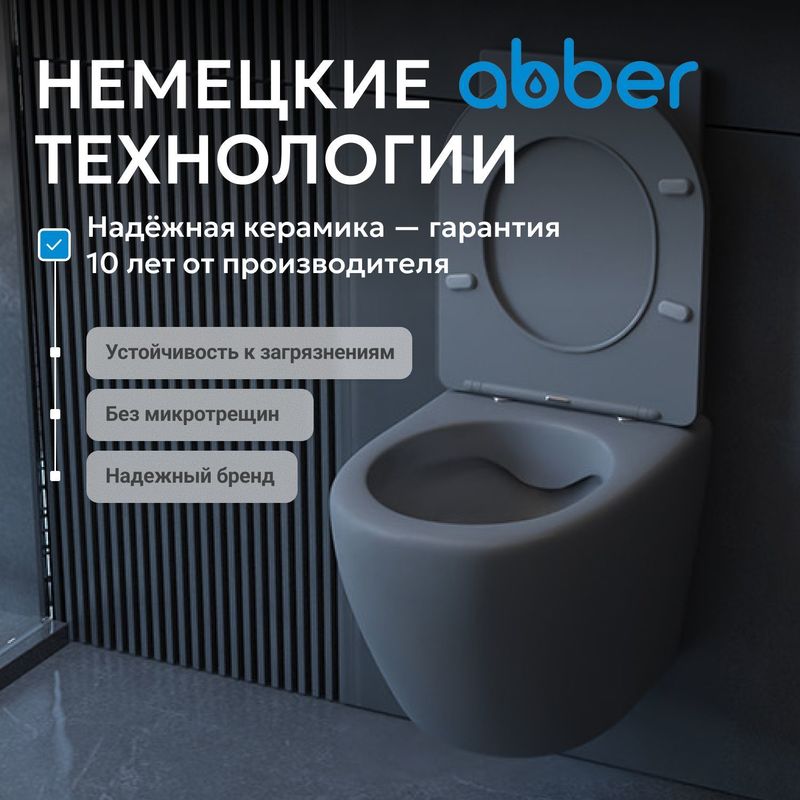 Унитаз ABBER Bequem AC1101MG подвесной серый матовый, безободковый