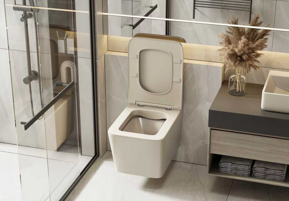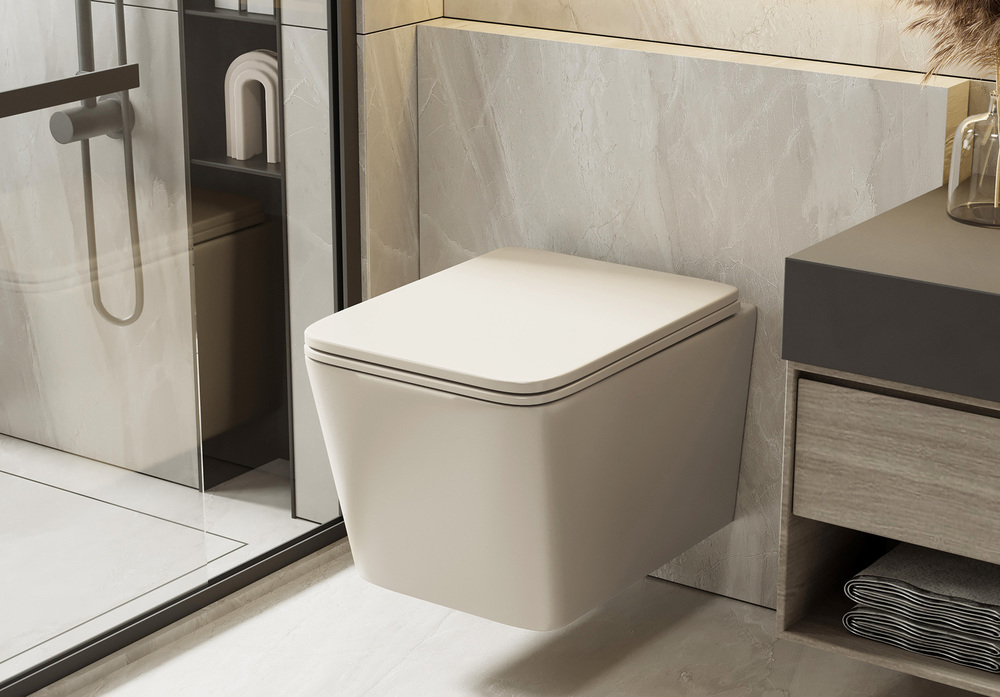 Унитаз ABBER Rechteck AC1201MBE подвесной светло-бежевый матовый, безободковый