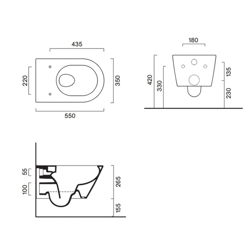 Унитаз подвесной Catalano Zero 0111550022 безободковый 35х55 см, смыв Торнадо, черный матовый