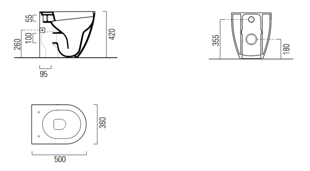 Унитаз приставной с системой безободкового смыва Swirlflush®. Установка со сливом в стену или пол. Изготовлен с применением антибактериальной эмали Extraglaze® Antibacterial, унитаз Pura 50 можно дополнить сиденьем с антибактериальным покрытием и плавным закрытием Softclose, либо стандартным, оба оснащены системой быстрого съема QuickRelease для лучшей гигиены.