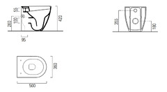 Унитаз приставной безободковый GSI PURA 8804FT11 500 мм х 360 мм, с крепежом FISSVBT, цвет Белый глянцевый: