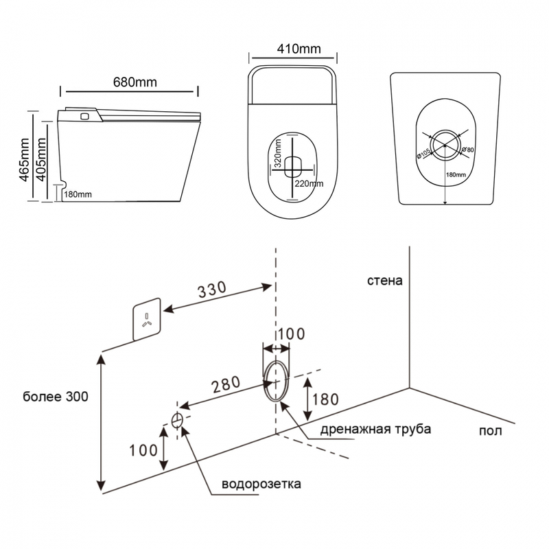 - Установка бачка: не требуется