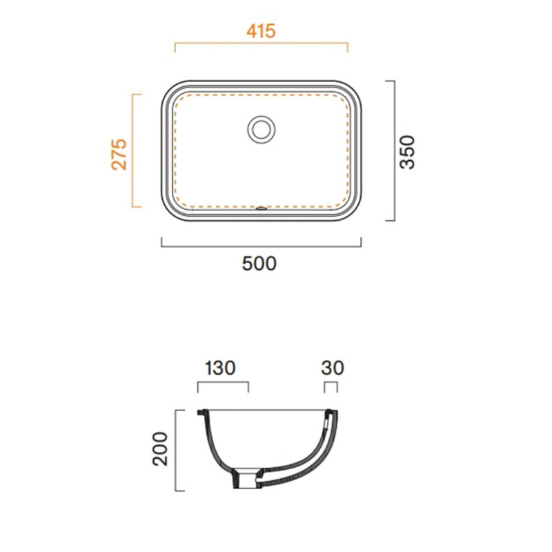 Раковина Catalano Italy 0727500001 встраиваемая снизу 50х35 см, белый глянцевый